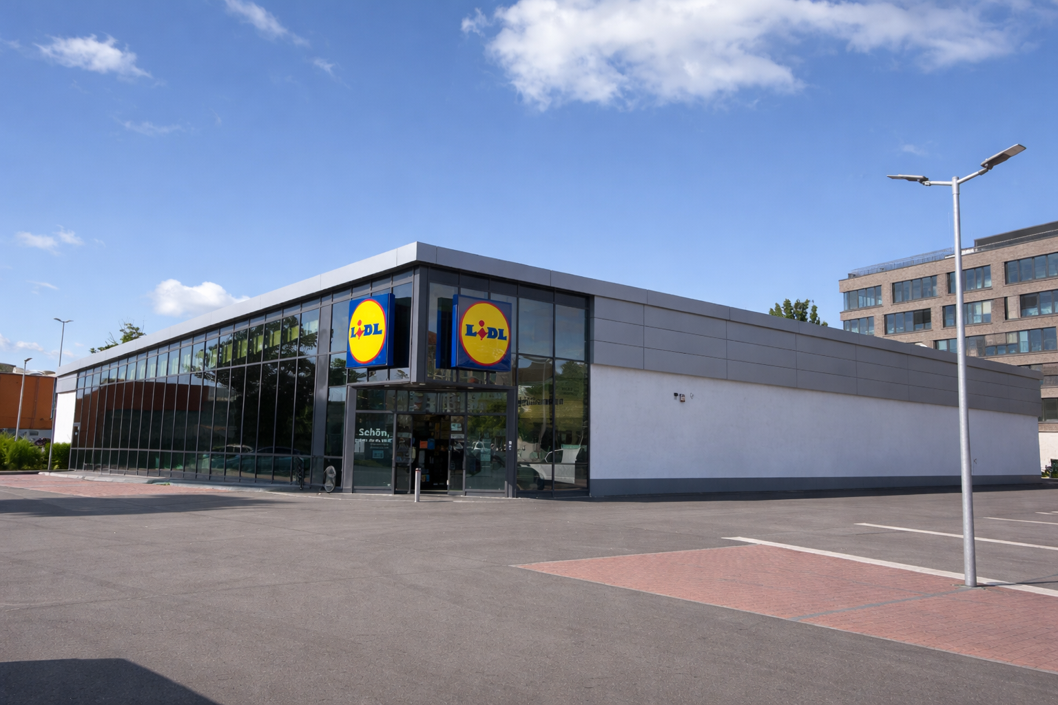 Wir reinigen und pflegen Außenflächen von Filialen, Parkplätzen und Eingangsbereichen gründlich und nachhaltig.
