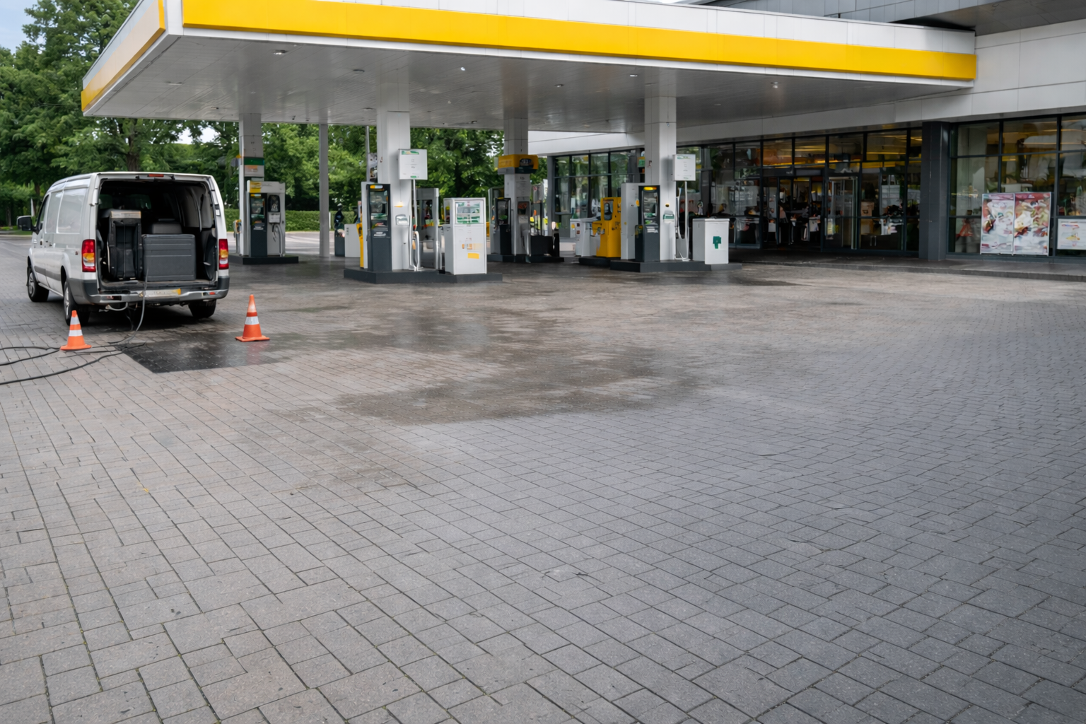Als Fachmann sind wir Ihr zuverlässiger Partner für die professionelle Reinigung von Großflächen und gewerblich genutzten Objekten. Dank unserer langjährigen Erfahrung und modernster Heißwassertechnik übernehmen wir anspruchsvolle Reinigungsarbeiten für Tankstellen, Industrie- und Fabrikgebäude, Lagerhallen, Parkhäuser, Fußballstadien, Einkaufszentren, Betriebshöfe, Produktionsflächen sowie weitere stark frequentierte Gewerbeflächen.